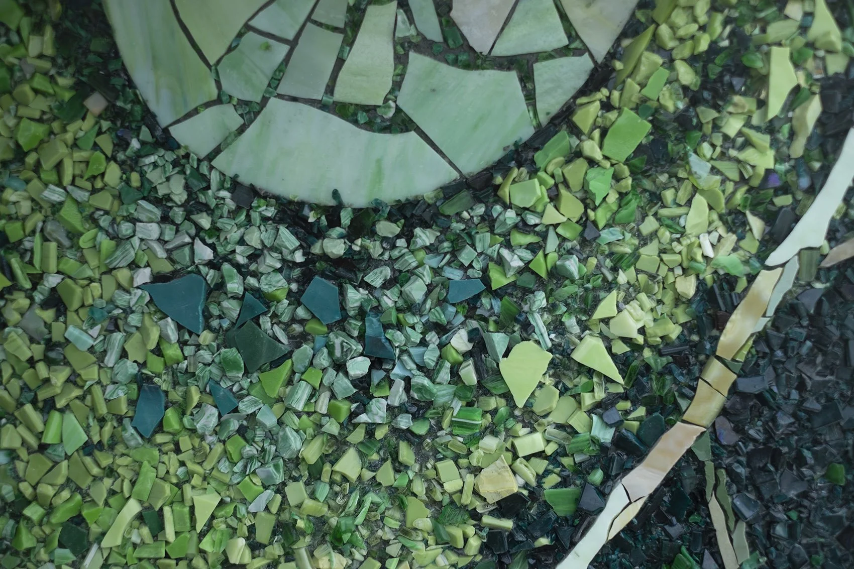 绿色马赛克被嵌入内墙,形成类似苔藓的图景。苔藓作为一种在南方环境中极具生命力的存在,既象征时间的沉积,也代表自然对人工物的渗透与修复。通过马赛克这种由微小单元构成整体的方式,墙面呈现出一种介于人工秩序与自然随机之间的状态。