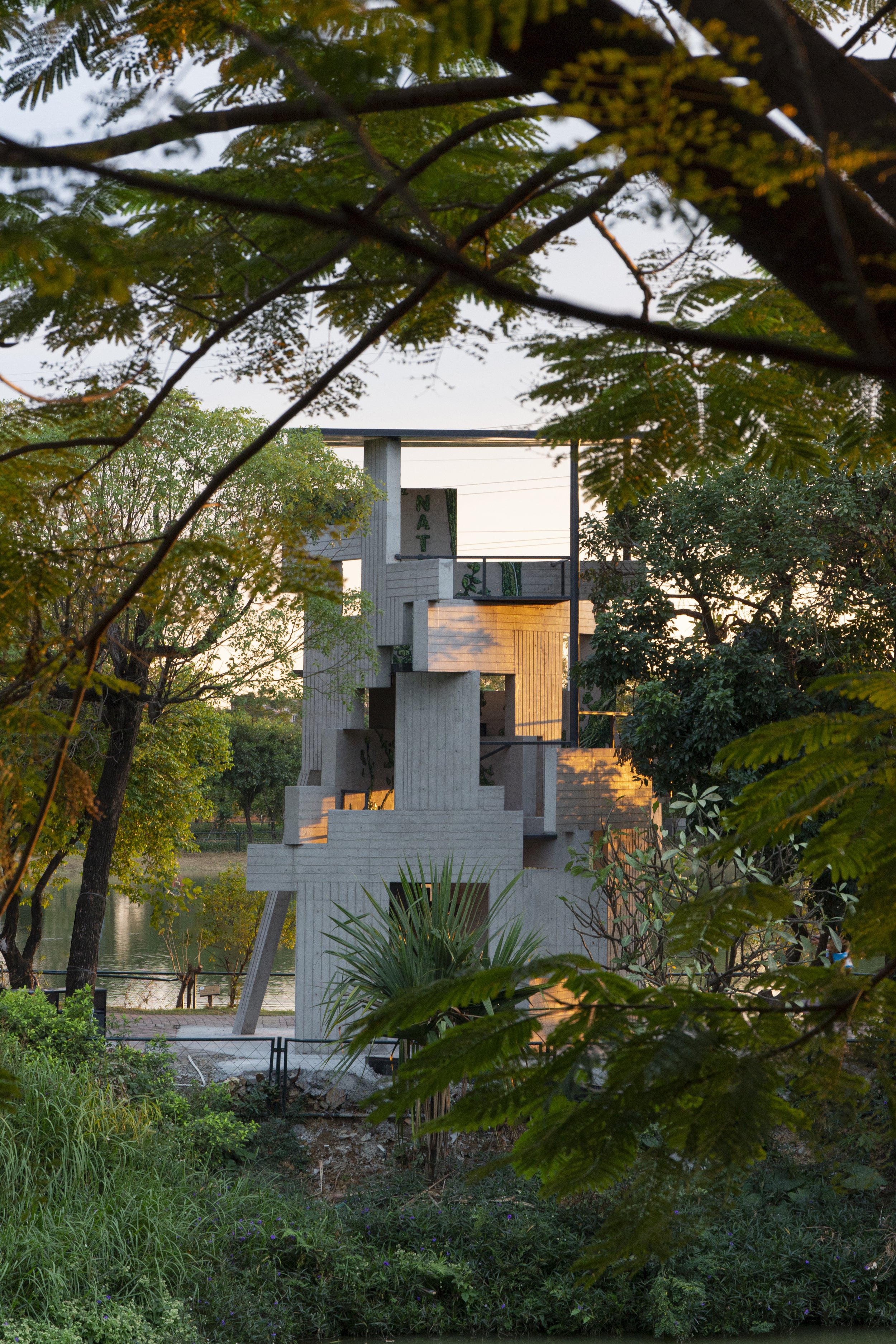 垂直自然塔位于广东佛山南海湖畔,是一座为大地艺术节建造的微型美术馆。场地所在区域由传统桑基鱼塘系统演化而来,农业、水系与生物共生交织,构成典型的南方生态与文化语境。在这样的环境中,建筑并非一个可以长期保持独立与稳定的对象,而是不可避免地被自然侵入、覆盖与转化。项目试图回应这种“南方性”——一种过度生长、不断生成与消解的状态。垂直自然塔因此被设想为一处“面向未来的遗迹”,它并不抵抗时间,而是预设自身将被自然逐渐吞没与重构。