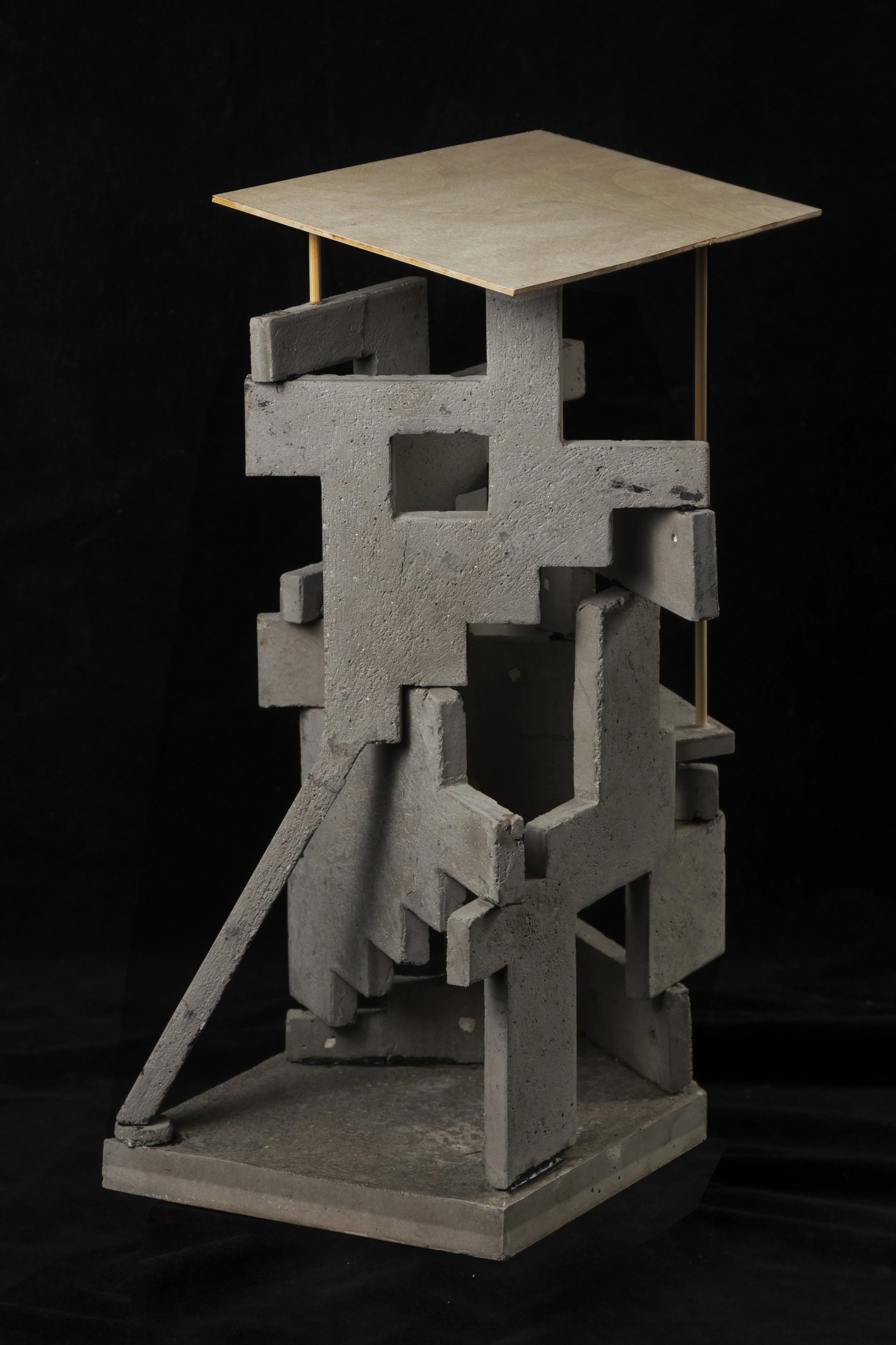 建筑由九片形态各异的现浇混凝土墙体构成。这些墙体相互交错、搭接,围合出一个垂直展开的空间系统。一条螺旋上升的路径穿行其间,引导人逐步向上抵达顶部的亭子。空间体验在行进中不断变化,在压缩与开放、内外之间形成交替。