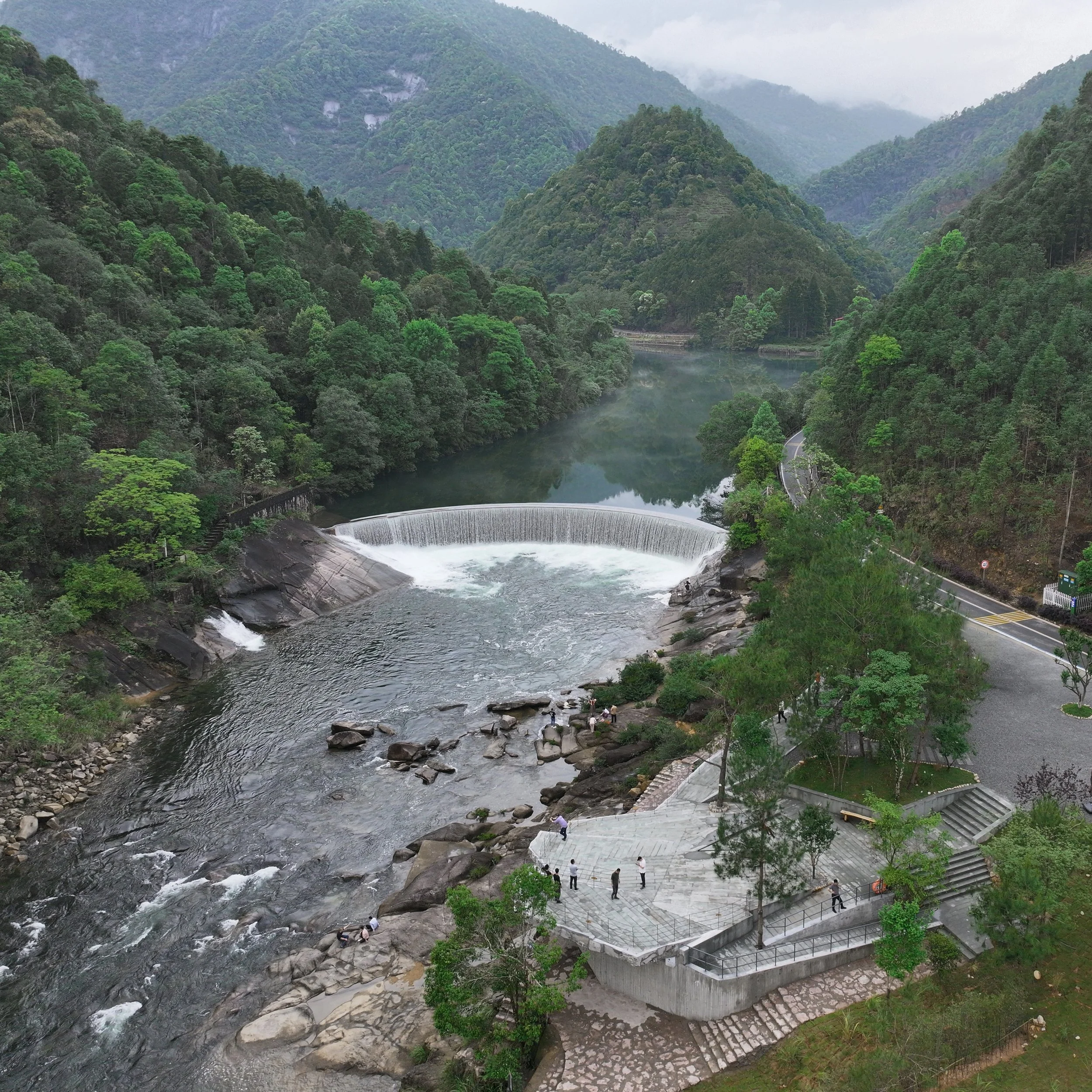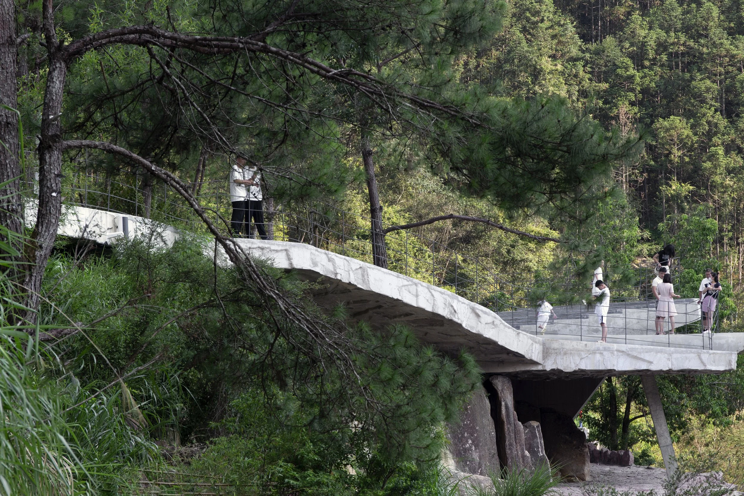 Moon Bay Waterfall marks the threshold of Mount Wuyi National Park and is the first landscape encountered upon entering the park. In 2023, CLAB Architects was commissioned to construct a viewing platform at this site.
