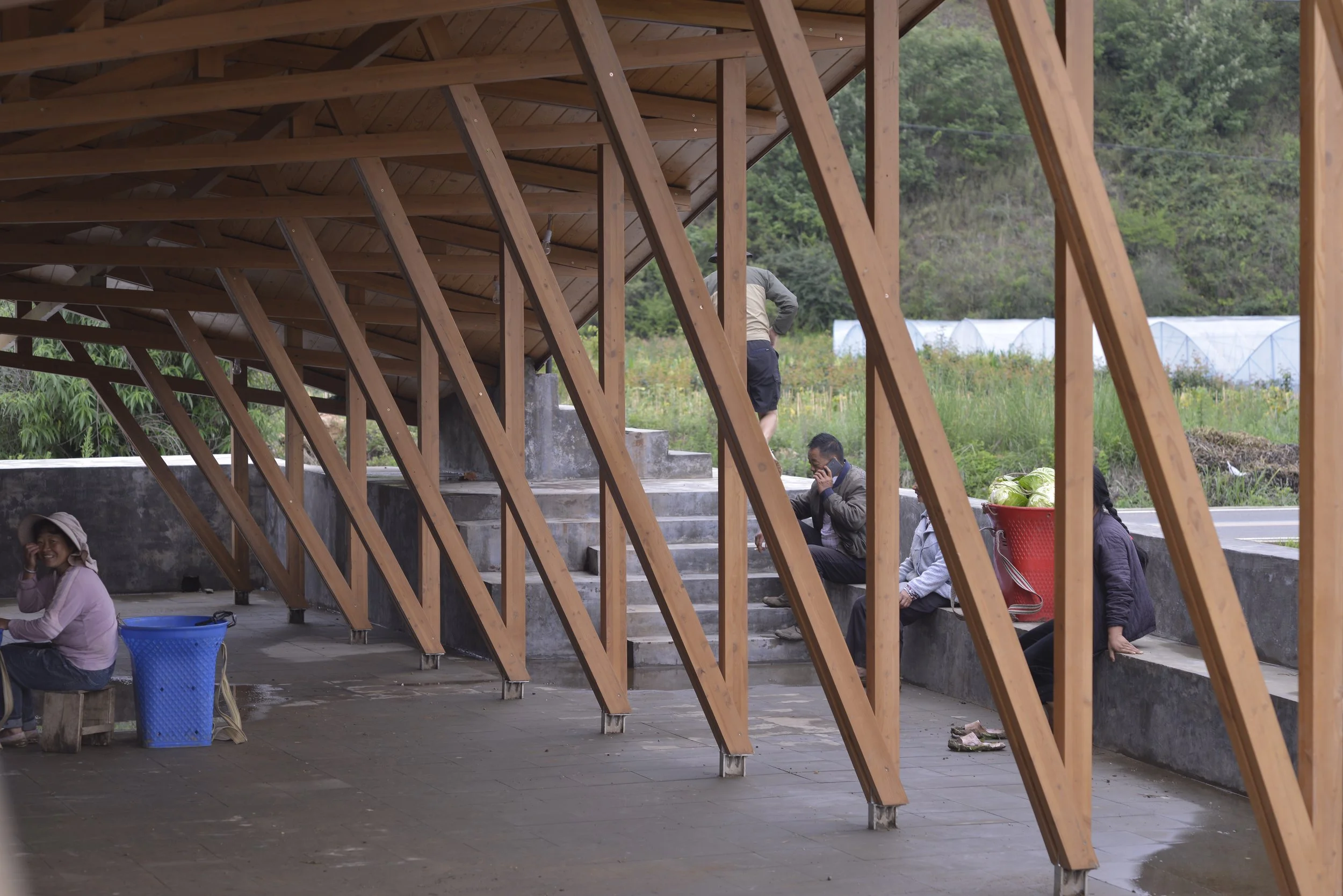 Located at the entrance of Lianhe Village, the Vegetable Market sits within farmland alongside a rural road. Benefiting from its favorable geographic conditions, the village produces high-quality fruits and vegetables, attracting a constant flow of produce traders. The project provides an open marketplace for these activities, forming a new interface between agriculture and exchange.