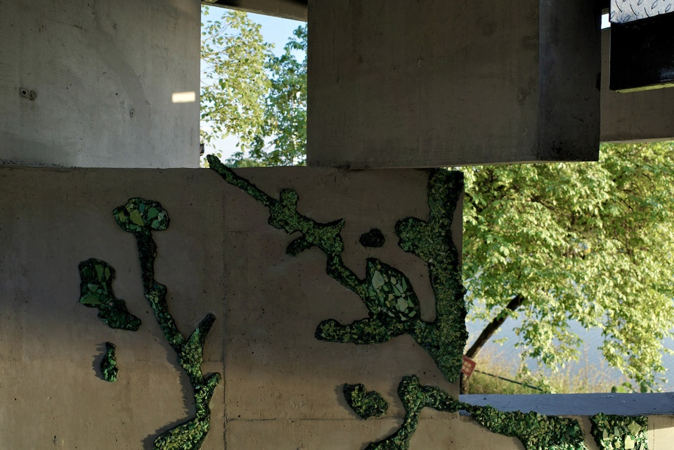 这种建造方式与场地中植物的在场形成了内在的一致性。午倦宫的场所并非被清理后的空地,而是由大树、荆棘与野生植被持续塑造的环境。秸秆作为植物生命周期中被遗弃的部分,被转化为混凝土生成的媒介,使植物以一种负形的方式进入墙体。混凝土因此不再只是指向恒久的无机材料,而成为一种承载时间差异的物质——生命的短暂性以痕迹的形式被保留下来。
